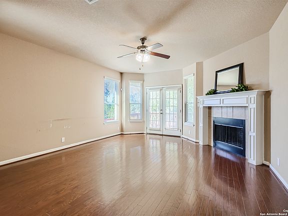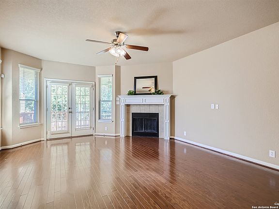 Experience the ultimate in suburban living in this wonderful four bedroom, two bathroom home nestled within the Winnbrook Estates community. Inside your new home, you'll be captivated by the warm and inviting family room boasting a cozy fireplace complete with an elegant mantel, perfect for creating cherished memories on those chilly evenings. The seamless blend of the living and dining area provides an open, airy feel and a versatile space for entertaining or simply unwinding after a long day. Whip up culinary delights in the island kitchen, equipped with sleek granite countertops, a smooth cooktop, built-in oven, and a microwave oven. The rich cabinets provide ample storage, while the wood floors add a touch of sophistication to the heart of the home. Retreat to the spacious primary bedroom, a true sanctuary featuring French doors that open to the deck overlooking the greenbelt - a tranquil spot to enjoy your morning coffee or unwind under the stars. The wheelchair-friendly walk-in/roll-in shower in the en-suite bathroom enhances accessibility without compromising style. A generous walk-in closet offers enough space for all your fashion essentials. The secondary bedrooms are carpeted, providing a cozy atmosphere and added warmth. Outside, the extended deck from the covered patio creates an ideal setting for al fresco dining, sunbathing, or hosting summer barbecues. Surrounded by a privacy fence, this backyard is your own secluded retreat. This stunning home in Windcrest embodies a harmonious blend of comfort and sophistication, providing an upscale and relaxed lifestyle.