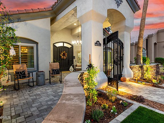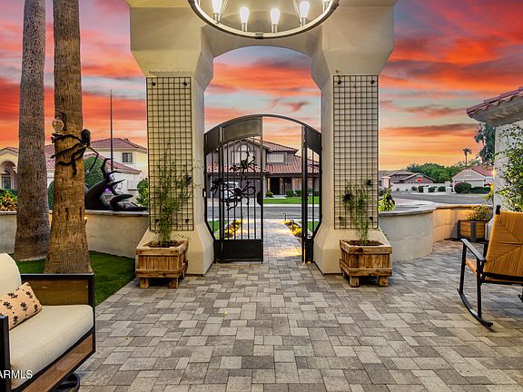 Luxurious living at its finest! This stunning home is nestled on a corner lot in the beautiful lake community of Val Vista Lakes! It has an exceptional blend of elegance, comfort & modern convenience. From the moment you step inside, you'll be greeted by designer touches throughout. Custom accent walls, ceiling beams, plantation shutters, and new oversized baseboards. The open-concept kitchen is a chef's dream, featuring a new farmhouse sink, quartz countertops, custom island, double ovens, 6-burner gas cooktop with griddle, pot filler, under-counter ice maker, coffee bar with water & electric, and custom pantry. Enjoy two electric fireplaces inside and a gas fireplace outdoors, creating perfect ambiance year-round. The home boasts triple-pane windows, newer flooring, upgraded lighting.. ..and fans, soft-close cabinetry, and 2 newer A/C units for efficiency and comfort. Functional features abound! Including 220-volt electric in the garage, emergency generator quick connect, electric attic stairs to a climate-controlled storage room, and even a custom dog shower and doggy door! The backyard is a private oasis with sparkling pool (Wi-Fi pump, 2023), removable safety fence (2025), pergola, built-in grill with sink, lush grass, pavers, and Malibu lighting. The front yard mirrors the luxury with new landscaping, pavers, drip systems, and a custom courtyard gate. Additional upgrades include built-in cabinetry, custom floating shelves, upgraded bathrooms with vessel sinks, and new hardware throughout. Every inch of this home reflects pride of ownership and thoughtful attention to detail. Truly a one-of-a-kind retreat ready for its next discerning owner!