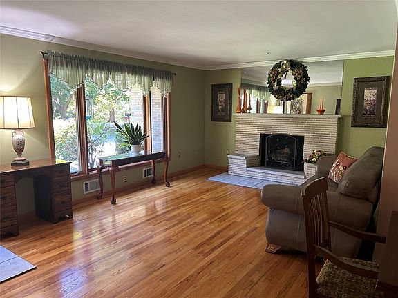 Welcome to this beautifully maintained 3-bedroom, 3-bathroom brick ranch in the heart of Fairview, offering timeless charm and modern comfort. Gleaming hardwood floors flow throughout the living room, dining room, library and all bedrooms. The cozy living room features a classic fireplace, while the elegant library offers a tranquil retreat boasting a bay window, second fireplace, and custom built-in bookshelves. A sunken family room with a tray ceiling and abundant windows creates a bright and inviting space. The sunroom features skylights and another bay window. The eat-in kitchen includes all appliances and a built-in desk area, perfect for casual meals and daily organization. Downstairs, the lower level offers a half bath with a relaxing sauna, a cedar closet, generous storage, a "secret room" along with flexible space to grow—ideal for a home gym, hobby room, or additional living area.