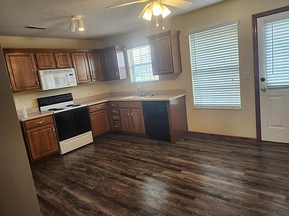 Spacious two bedroom, one bath, one car garage available in Grain Valley. This half duplex features eat in kitchen, semi private back patio and washer/dryer hook ups on main level.
