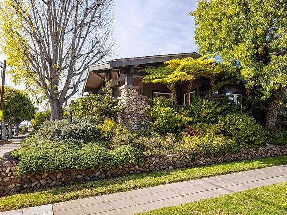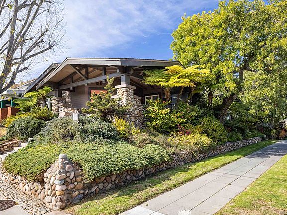 Prepare to be enchanted by this classic 1913 Craftsman bungalow nestled in the heart of North Mission Hills! On the Registry of San Diego Landmarks, this exceptional home exhibits meticulous craftsmanship and design throughout. Perched above the street on a shady corner lot, this 2644 sq. ft. home is part of the legacy of Martin Melhorn, who built a number of homes that help define the character of Mission Hills. Featuring exposed eaves and rafters, extensive built-ins, and an inviting wraparound front porch, the builder made extensive use of rounded river rock, or cobblestone, on the surrounding walls, pillars, and paths, hence the name Crone’s Cobblestone Cottage. An architect-designed addition enlarged the cottage to 4 bedrooms and 2.5 baths. Surrounded by lush gardens, a stone fountain, and mature landscaping, this will be the perfect home for those who prize enduring architectural beauty.