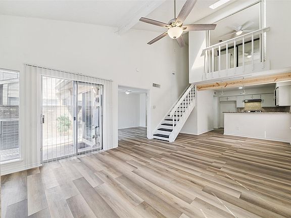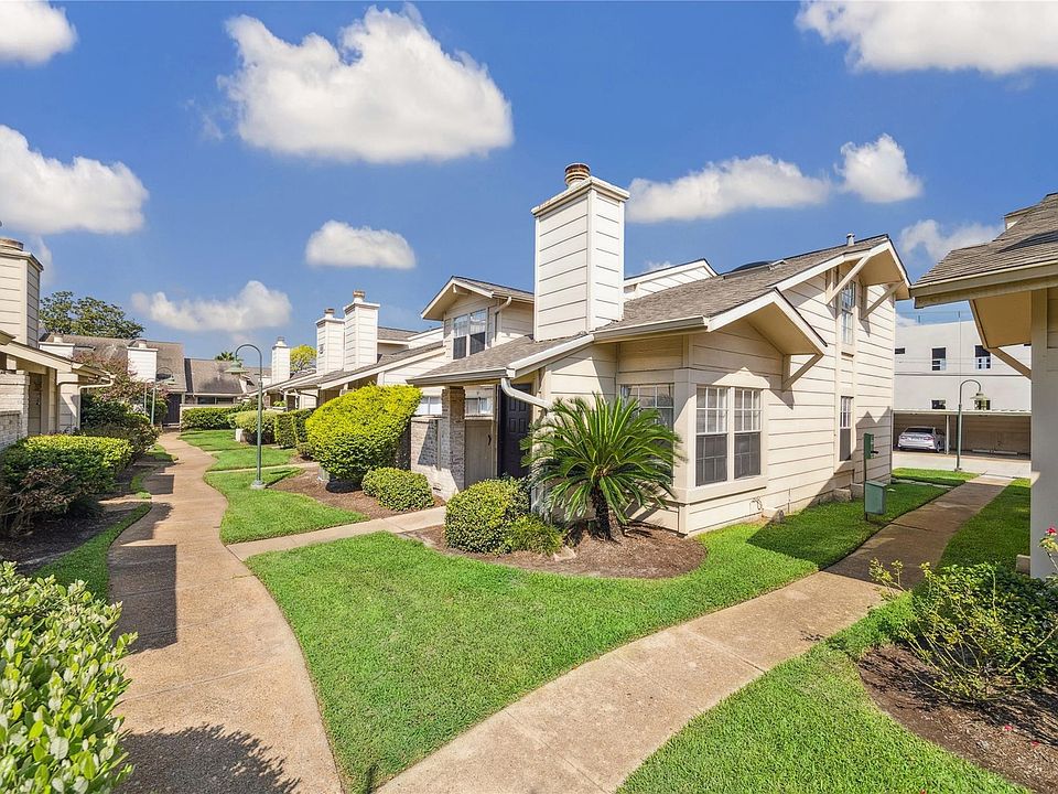 RARE find in Houston's International District the ONLY GATED townhome community in the area. MOVE-IN READY CORNER UNIT with HIGH CEILINGS, SKYLIGHT, and abundant natural light. LOFT LAYOUT with open living/dining and a cozy fireplace. Fresh paint and recent laminate flooring throughout (no carpet!). Updated kitchen with new sink and appliances. Both baths refreshed with new tile, vanities, and lighting. Spacious primary suite with DOUBLE-SINK VANITY and WALK-IN CLOSET; two secondary bedrooms and a second full bath upstairs. PRIVATE PATIO; WASHER/DRYER INCLUDED; WATER INCLUDED; exterior maintenance included; covered assigned parking spot. Well-kept, quiet, well-lit community with POOL. Minutes to Westpark Tollway and Houston's top Asian dining; walking distance to the soon-to-open Bellaire Market District. Contact your Realtor to schedule a tour!