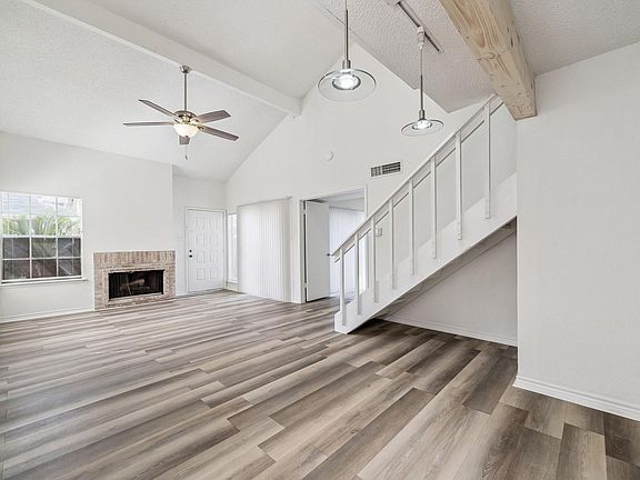 Cozy fireplacePrivate patioFresh paintHigh ceilingsAbundant natural lightWalk-in closetDouble-sink vanity