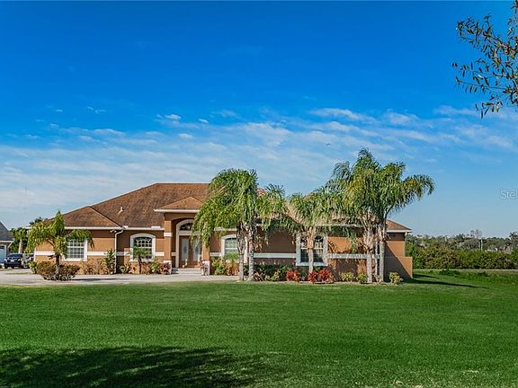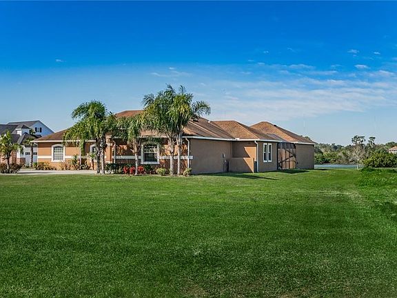WATERFRONT - EXQUISITELY Built Custom LAKE FRONT HOME in McIntosh Lakes! Enjoy Peace and Serenity! This 4/2.5/5 Car Garage(2) with a Den/Office and a MEGA Game/Bonus rm with 4,506 heated square feet. This Home offers the Grandeur of the Foyer with Columns, 10' Ceilings throughout, Porcelain tile in hallways and all Wet areas, Engineered Hardwood in formal areas and carpet in Bedrooms and Game room. The Kitchen boasts all Stainless steel appliances, Granite counter tops, HUGE walk-in pantry and Solid Wood cabinets. The Master suite offers: 2 Walk-in closets, a sitting area and room for KING size bed and larger furniture, Double Granite vanities, Garden Jacuzzi Soaker Tub and separate Large Walk-in Shower. The AWESOME Game room has a Wet Bar area, room for all your Play Toys and a 1/2 bath and more. You walk out the French doors to Screened Saltwater Pool/Spa/Waterfall overflow to the extensive back yard to Lake and Dock. The home features 2 separate Garages! 1 to house 2 cars and the other to house 3 cars! Plenty of room to spread out and enjoy life. Come see for yourself. AND No Backyard N'bors!!! In 7/19, the Carpet was replaced. Convenient to I-4 and 75. Room sizes are approximate and all information should be verified by buyer. Don't let this one get away! ACT NOW easy to see!