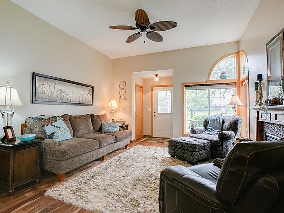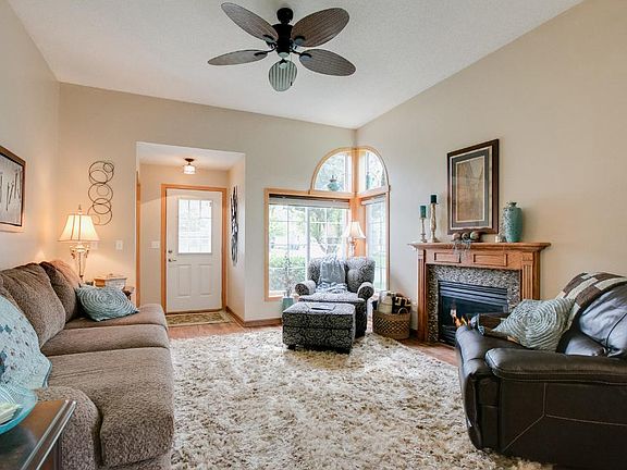 Impeccably updated one-level living! You will be WOWed by the custom kitchen, hand scraped flooring, granite countertops, upgraded blinds, high-end stainless appliances, new lighting fixtures, vanities, bathrooms updated, and much, much more! 2 fireplaces, cozy sunroom, large deck, and great end-unit location. This one will not last long at this price! A large room was finished in the basement for a great office or storage area. Both the masters suite and 2nd bedroom boast walk-in closets.