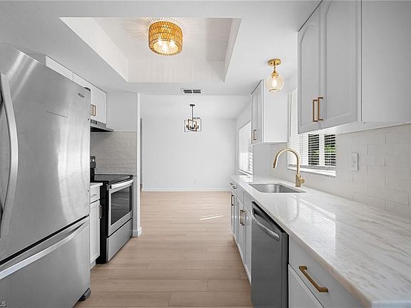 NEVER FLOODED! This home is a SHOWSTOPPER! Completely renovated 3-bedroom, 1-bath home with attached 1-car garage and spacious fenced in backyard perfect for kids and pets! Features newer roof (2021) and newer hot water heater, fresh interior and exterior paint, NEW LVP flooring, NEW modern light fixtures and ceiling fans, NEW black hardware, and window coverings throughout. Updated Kitchen offers stainless steel appliances, quartz countertops with tasteful white subway tile backsplash & stunning gold hardware. Fresh landscaping adds to the eye catching modern exterior. Conveniently located near Fort Myers Shores Nature Trail, Community park, Davis Community boat ramp, two Publix plazas, & with easy access to I-75 just 5 miles away it’s an easy commute to work or RSW.