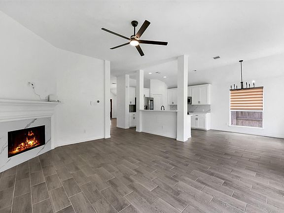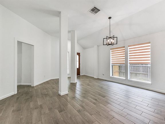 Stunning one story home available for lease. Refrigerator, washer & dryer included. This renovated home features an open-concept layout with high ceilings, abundant natural light, 3 bedrooms & 2 full baths. Beautiful finishes include wood-look tile flooring throughout the home, white shaker-style cabinetry, quartz countertops, stainless steel appliances, contemporary fixtures/ceiling fans & more. The luxurious primary suite includes a deluxe oversized shower with dual shower heads and a frameless glass enclosure. Located in a master-planned community with numerous resort-style amenities and on-site schools, and conveniently located just minutes from 288, 521 & Beltway 8 for an easy commute.