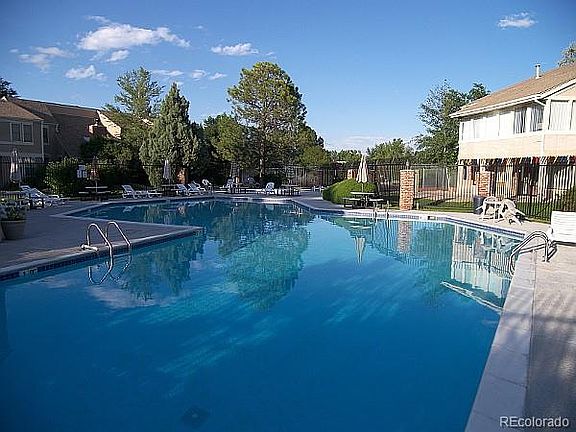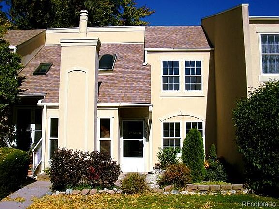Nicely maintained Dam East Townhome with private patio and adjacent 2 car garage! Dam East Townhomes complex features clubhouse, swimming pool and tennis courts. Unit features a spacious, open floor plan with high ceilings and wood burning fireplace. Primary bedroom and second bedroom each have a vanity with sink and adjacent tandem bath. Large 3rd bedroom or den with closet on main floor with adjacent bath with shower. Spacious dining area in well appointed kitchen with stainless steel appliances. Sliding door off kitchen leads to private rear yard with service door to 2 car garage. Private front entrance on greenspace with street parking in front for guests. Cherry Creek schools. Close to light rail/ bus lines, shopping, restaurants, parks and trails, Cherry Creek State Park Reservoir.