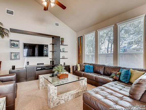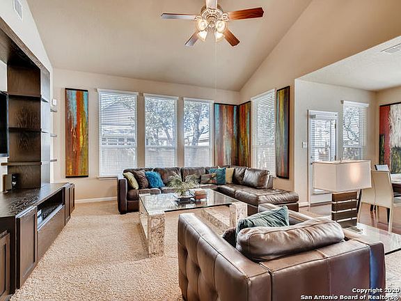 Absolutely gorgeous home in pristine condition on quiet culdesac in northwest SA nestled between Fiesta Texas & SeaWorld~Rich wood floors~18 ft Ceiling in family area~beautiful granite island & counters w/ GE profile Microwave/Stove/Dishwasher & cooktop warming zone~Arches~Art niches~Downstairs master retreat~Sec bed w/ insuite bath~Study w/ builtin desk/shelves~Upstairs Game Rm~Stained concrete in garage~Sealed driveway~Front & back porches~Flagstone patio shaded by oaks~Low Maintenance yard~Custom decor!
