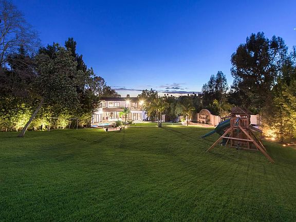 Rare opportunity to purchase a magnificent Mediterranean tri-level home on 18,941 sq ft lot and a separate adjacent 21,900 sq ft lot in prestigious Brentwood Park. Both the house and land have individual APN's and entrances . The immaculate estate consist of 11,616 sq ft, 5 bedrooms and 9 bathrooms. The sophisticated main level offers a living room, family room, dining room and sleek office accentuated by wood beam ceilings, fireplaces and grand windows that allows an abundance of natural light. Also, there is a chefs kitchen which will include top of the line appliances of buyers choice and butlers pantry. Upper level has luxurious bedroom suites w/sumptuous baths. The master bedroom has a fireplace with his and her bathrooms and walk in closets. There are also french doors which leads to a balcony overlooking the pool and grounds. The bottom level offers a huge entertaining/game room w/ wet bar, home theater, gorgeous wine seller w/tasting room. Amenities include an elevator, dumb waiter, security alarms, cameras, and huge linen closets. Outdoors, there is a beautiful Pool, Spa and outdoor Kitchen. Make this house and land a unique compound of your own with tremendous upside and flexibility to possibly build an accessory dwelling unit, recreational facility or even a second home. Moments from local schools & the best that Brentwood has to offer