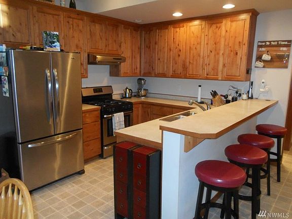 2 Bdr 1 bath superior quality construction Stylish kitchen with Knotty Alder Cabinets eating counter Renai on demand hot water. Easy maintenance "Altima" flooring in the living, dining area, kitchen. R44 insulation in roof, R38 high density in vaulted ceiling. Located in Mt. Baker Rim! Pool, 2 Tennis Courts, Club House, frisbee golf, creekside walks. Easy access to Mt. Baker Ski/Snowboard area. Mountain bike trails, hiking trails, close to store, restaurants, bakery.