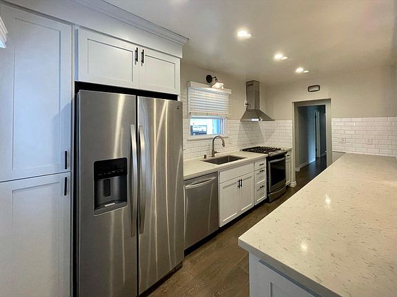 Showing on Saturday Oct 2. Please inquire to confirm times. Spacious open floorplan home with updated kitchen that extends into large dining area and family room. Appliances included. White cabinets and updated quartz countertops in kitchen with counter seating at island. 4 bedrooms, 2 bathrooms total with a master suite. Refrigerator, washer, dryer are all included. AC, two car garage. Additional parking in drive way. Storage only allowed indoors. Refrigerator, washer, dryer included. Short term lease considered. Gardening is tenant's responsibility with pets.
