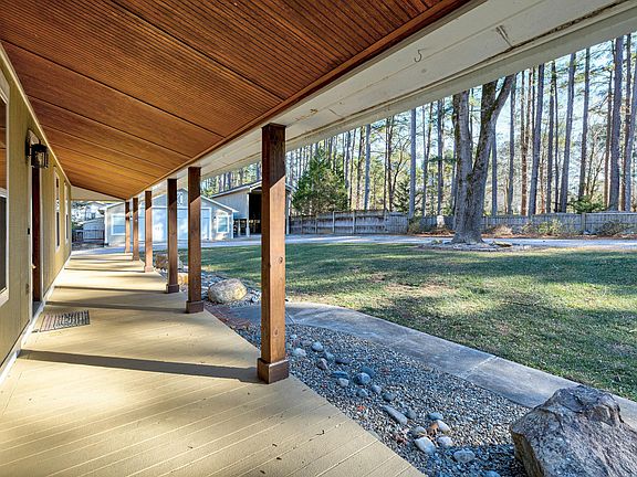 Calling all car enthusiasts! This property offers exceptional space to house everything from motorcycles to RVs. The ranch-style home provides effortless one-level living, while the interior evokes a cozy mountain-chalet vibe with vaulted tongue-and-groove ceilings and a wood-stove fireplace framed by a stunning stacked-stone surround. The open floor plan is ideal for entertaining, complemented by new LVP flooring in the main living areas and new carpet in the bedroom. An attached workshop provides the perfect space for hobbies and projects. Step out onto the deck to enjoy the private, peaceful backyard. Additional outbuildings include a carport, RV carport, and a spacious detached garage/workshop—plenty of room for storage, toys, and tools. Conveniently located for easy commuting to the airport or RTP, yet tucked away enough to offer true relaxation and privacy.