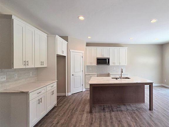 Laminate flooringQuartz tops in bathsGranite kitchens