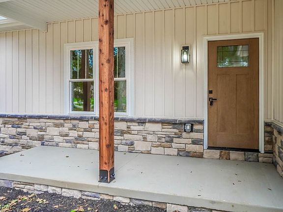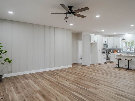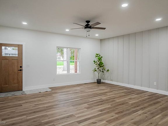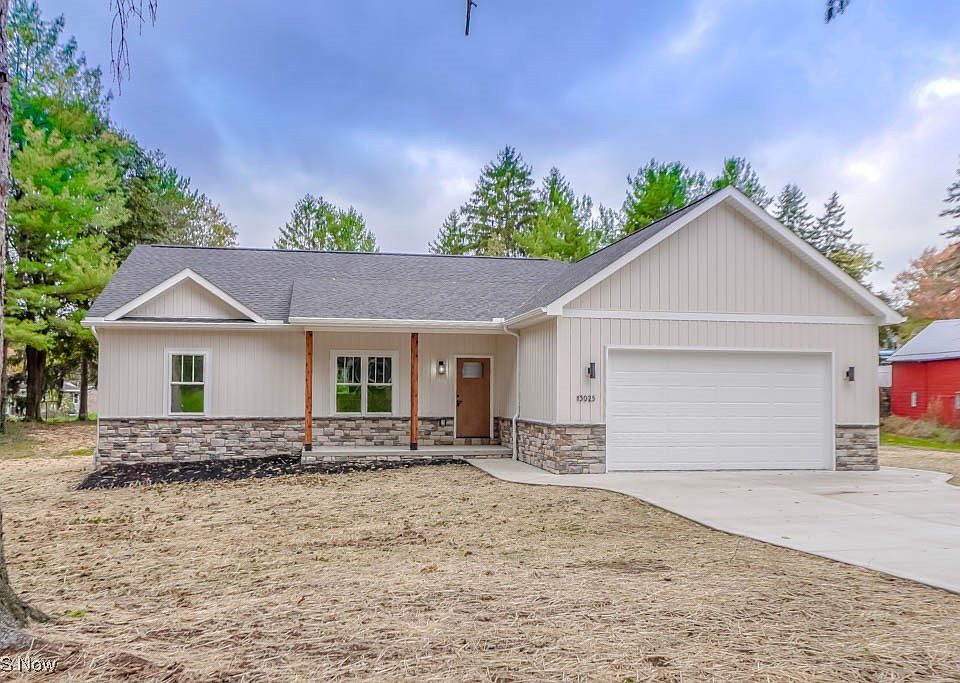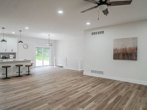 Be the first to call this brand new 3 bedroom, 2 bath ranch on a full acre in Lake Local Schools home! Thoughtfully designed, it features an open layout with a bright living area, recessed lighting, a board and batten accent wall, and luxury vinyl plank flooring that flows through the main living spaces. The kitchen stands out with white Shaker cabinets, quartz countertops, stainless steel appliances, a tile backsplash, and a large island with seating. A dining area nearby opens through sliding doors to a concrete patio and spacious backyard lined with mature trees.