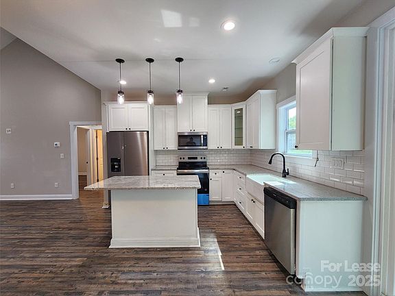 Come see this move in ready 3 bedroom, 2 bathroom ranch built in 2022! The open floor plan is perfect for entertaining. The kitchen comes with ample cabinet space, tile backsplash, and granite topped island. The LVP flooring throughout the home gives a luxury look and feel with little maintenance. There are 3 good sized bedrooms and 2 full bathrooms each with granite countertops and modern fixtures. Conveniently located laundry room off the kitchen. Exit through the rear sliding doors onto the deck and enjoy the beautiful outdoors with mature trees and a spacious yard. Only moments from Downtown Kings Mountain and multiple grocery stores, the location of this home is both private and convenient. Make this house your home today!