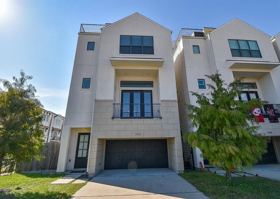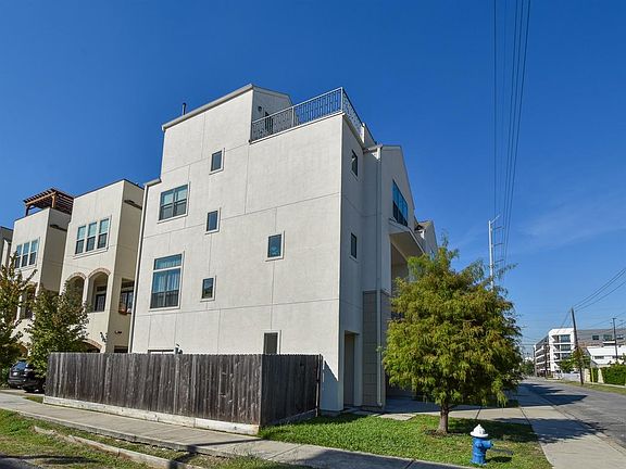Stop by and see this wonderful home in Rice Military! This corner lot home hits all the boxes on any homeownerâs list! Have guests over without worrying about parking with the 2-car garage and large driveway, plus lots of street parking available. Enjoy drinks on the rooftop terrace with incredible downtown views, relax on the 2nd floor balcony, or lounge in the spacious side yard. This open concept home has great lighting and windows throughout. High end finishes include stainless steel appliances, granite counter top, rich hardwood floors, and tile back splash in the kitchen. Large island in the kitchen with eat-in breakfast bar open to the living room. The master suite has high ceilings and a large closet. The luxurious master bath has marble flooring, his & hers sinks, separate tub and tiled shower. Walking distance to restaurants and grocery stores!
