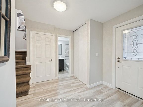 Welcome to this stunning fully renovated 3+1 bedroom semi-detached home in the desirable Lakeview neighbourhood of Oshawa! Ideally located on a quiet crescent, this move-in-ready property offers modern finishes throughout and convenient access to Highway 401, public transit, schools, parks, Lakeview Park, waterfront trails, and everyday amenities like shopping and dining. Step inside to discover beautiful new laminate flooring flowing through the main and upper levels, complemented by fresh modern paint in neutral tones. The bright open-concept living and dining area creates a welcoming space for entertaining, with an upgraded staircase featuring sleek iron spindles adding a contemporary touch. The gourmet kitchen is a highlight, boasting oversized porcelain tile flooring, elegant quartz countertops, stainless steel appliances, LED pot lights, and a cozy eat-in area perfect for casual meals. A convenient powder room on the main floor has been tastefully updated with new flooring, vanity, and toilet. Upstairs, the spacious primary bedroom features new laminate flooring, a walk-in closet, and a refreshed 2-piece ensuite. Two additional good-sized bedrooms share a beautifully renovated 4-piece bathroom with a tub and stylish porcelain wall tiles. The fully finished basement extends your living space with a fourth bedroom, a modern 4-piece bathroom matching the upper level's quality appointments, a versatile flex room (ideal for a home office or gym), a recreation area, and a laundry room equipped with an owned tankless hot water system for efficiency. Outside, enjoy ample parking with room for two cars on the driveway plus an attached single-car garage. The fully fenced backyard provides privacy and features a deck off the back door-perfect for summer barbecues-along with a handy storage shed. This turnkey home combines style, functionality, and location-don't miss your chance to make it yours!