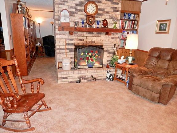 Beautiful 3-2-2 brick home with CH-A, 2 living areas; 2 dining areas; Kitchen has a built-in oven, dishwasher, elect cooktop, vent-a-hood, trash compactor, double sink, disposal & refrigerator (conveys); Separate utility room with washer & dryer (conveys) built-in cabinets; Large garage with 2nd refrigerator (conveys); Den boasts a brick WBFP; Second living area features a wall of bookshelves (negotiable); Master bedroom has an ensuite with step-in shower; Hall bath with tub-shower combo; Linen closet; Carpet in most rooms; Vinyl flooring in kitchen, utility & baths; Spectacular covered patio is 40' x 14'; Roof & double storm windows installed in 2008; 50 yr metal roof; Wood privacy fence with concrete curbing.