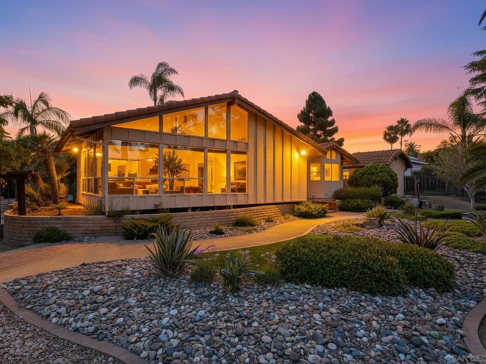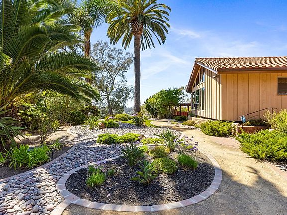 Perched at the top of a hill, at the end of a quiet cul-de-sac, this Fire Mountain dream property is a rare find! This home offers nearly half an acre of beautifully landscaped, hilltop living with sweeping 180° views, including distant ocean and breathtaking sunsets. You can really see the pride of ownership in this home. You'll find updated Milgard windows, a new HVAC system, an attic fan, updated roof, ongoing termite control, and a clean wood structure. This makes it the perfect home for someone looking to do a cosmetic remodel. The two-car garage is complemented by two separate storage or workshop spaces, and for those looking for something truly unique, the property includes a full-size bunker built in the '70s, perfect for a wine cellar, extra storage, or a creative hideaway. The lush landscaping is anchored by towering Canary Palms, creating a serene and private outdoor setting. This is a rare opportunity to own a single-level home with incredible space, stunning views, and tons of character in one of Oceanside's most desirable neighborhoods.