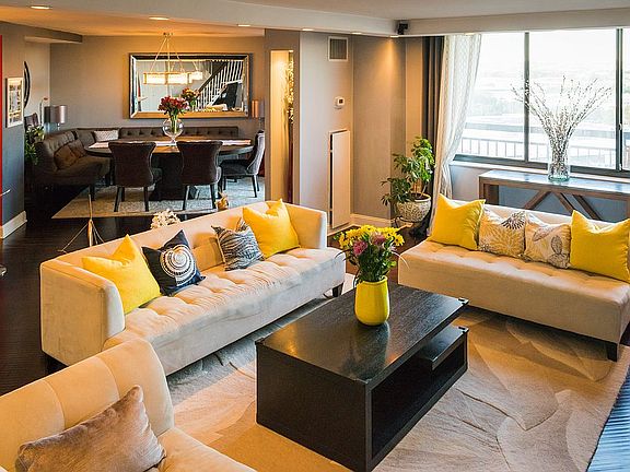 Luxurious duplex unit with captivating New York City skyline views throughout. The first level features an open modern concept – Elegant living room that is spotlighted by an ethanol fireplace and designer style recessed lighting. A gorgeous kitchen with stainless steel appliances and Quartz countertops. A beautiful dining room that leads out to a full balcony, your own personal serenity, with views to New York City skyline. A powder room with Porcelanosa finishes, and bamboo flooring throughout complete the first floor. The second level has two large bedrooms and two full baths. The Master bedroom ensuite, with walk-in closet, includes an ethanol fireplace and a second balcony with stunning views. The Master bath is impeccable, featuring Porcelanosa tiles throughout, a double vanity sink w/ sconce lighting, a full shower and a full soaking tub that sets the tone for a spa like retreat. Other features include upstairs washer and dryer. The unit comes with an assigned indoor parking spot. The Towers is conveniently located 15 minutes away from Manhattan with public transportation right outside the building. Amenities include a full gym, outdoor pool, tennis court, basketball court, game room, nursery, playground, 24 hour concierge service and security.