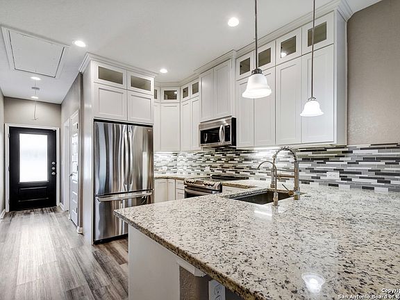 Welcome to 1303 Lombrano St, a stylish and inviting single-story home designed for modern living and ideally located just minutes from Woodlawn Lake. Enjoy scenic walking trails, playgrounds, sports courts, and tranquil views, all close to home. You're also only a short drive from downtown San Antonio, with dining, entertainment, events, and historic attractions easily within reach. This bright residence offers 1,035 sq. ft. of thoughtfully designed living space, showcasing a fresh, contemporary feel throughout. Step inside to an open-concept living and dining area enhanced by high ceilings and a sleek breakfast-bar kitchen-perfect for everyday comfort and effortless entertaining. The home features three generously sized bedrooms and two full bathrooms, providing both functionality and privacy. A fully equipped kitchen and laundry setup includes a washer and dryer, smooth-top cooktop, two built-in ovens, microwave, refrigerator, and garbage disposal-everything you need to feel right at home. Don't miss this opportunity-schedule your showing today and experience all this home and location have to offer!