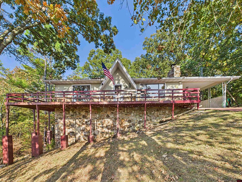 Enjoy stunning views every season from this charming 2-bedroom, 2-bathroom home in Horseshoe Bend. With 1,176 sq ft of living space and situated on two lots, this property offers a spacious open floor plan and an expansive wraparound deck, perfect for relaxing or entertaining. Both bedrooms feature walk-in closets, private entrances from the deck, and picturesque lake views. The hall bathroom includes dual closets for added storage convenience. Outside the property offers a fenced backyard, storage room off the carport and a workshop space beneath the home – ideal for hobbies or extra storage. Whether you're looking for a full-time residence, vacation home, or investment property, this lakeside retreat checks all the boxes!