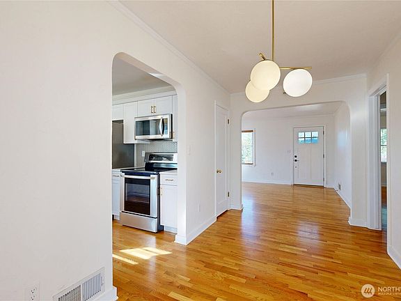 Charming corner-lot home with mature trees and numerous updates! This 3-bedroom, 2-bathroom home offers generous living space, including a basement recreation room. The main floor showcases newly refinished original hardwood floors, a fully remodeled bathroom, and an updated kitchen with quartz countertops. The dining room features sliding glass doors that open to a spacious covered patio—perfect for outdoor dining and entertaining. The fully fenced backyard includes underground sprinklers, RV parking, alley access, and a detached two-car garage.