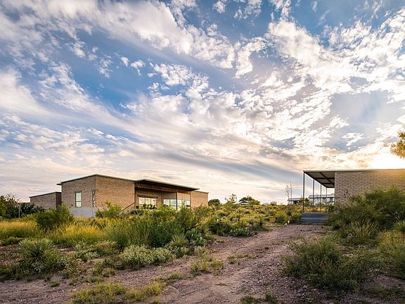 Designed by architect Larry Doll, this contemporary adobe home is featured in the book Marfa Modern and other publications. Conceived for its location and views, the home is suited to the Marfa climate and culture, and seamlessly entwines with the landscape. The spacious main home has two fireplaces, open kitchen flowing into living space, two large porches, and a private enclosed courtyard. The well appointed casita offers quiet privacy. Central HVAC, rain catchment, solar panels and garage.