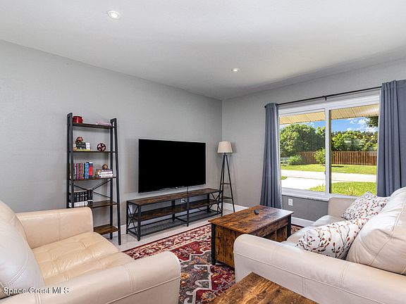 This beautifully updated 3-bedroom, 2-bath home on an oversized corner lot is the perfect blend of style, comfort, and opportunity. The open floor plan welcomes you with a bright living room, spacious eat-in kitchen, and a flexible bonus room that works as an office, family room, or even an additional bedroom. Thoughtful upgrades include a newer roof, HVAC, impact windows, closet systems, gutters, appliances, shed, fence and a refreshed patio and walkway. Tile flooring runs throughout the home for easy care, while the patio and fully fenced yard create private outdoor spaces for gathering, entertaining, or simply enjoying Florida's sunshine. With city water and sewer, plus a central location near shopping, dining, schools, I-95, and the beaches, this home is as convenient as it is charming. Move-in ready for everyday living, it also presents excellent potential as a vacation rental or Airbnb, making it a smart investment for the future.