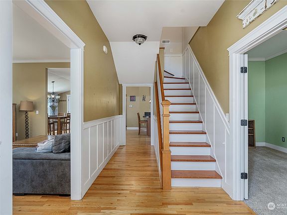 Welcome to this impeccably charming Craftsman on a corner lot and start your mornings sipping coffee on the spacious porch. Inside has beautiful hardwood floors, new carpet, soaring ceilings & crown molding. A large kitchen w/ abounding storage for any level of culinary expertise. Enjoy meals at the breakfast bar, or perhaps the dining room for more formal occasions. The primary bedroom is sized to accommodate any layout w/an ensuite bathroom & dual vanity. Through the French doors is an office space, craft room, or more. The beautifully landscaped backyard is ready for you to host Summer BBQ's or create the garden of your dreams. Ten minutes from the East Bay, close proximity to Downtown Olympia & other fine amenities. Won't last long!