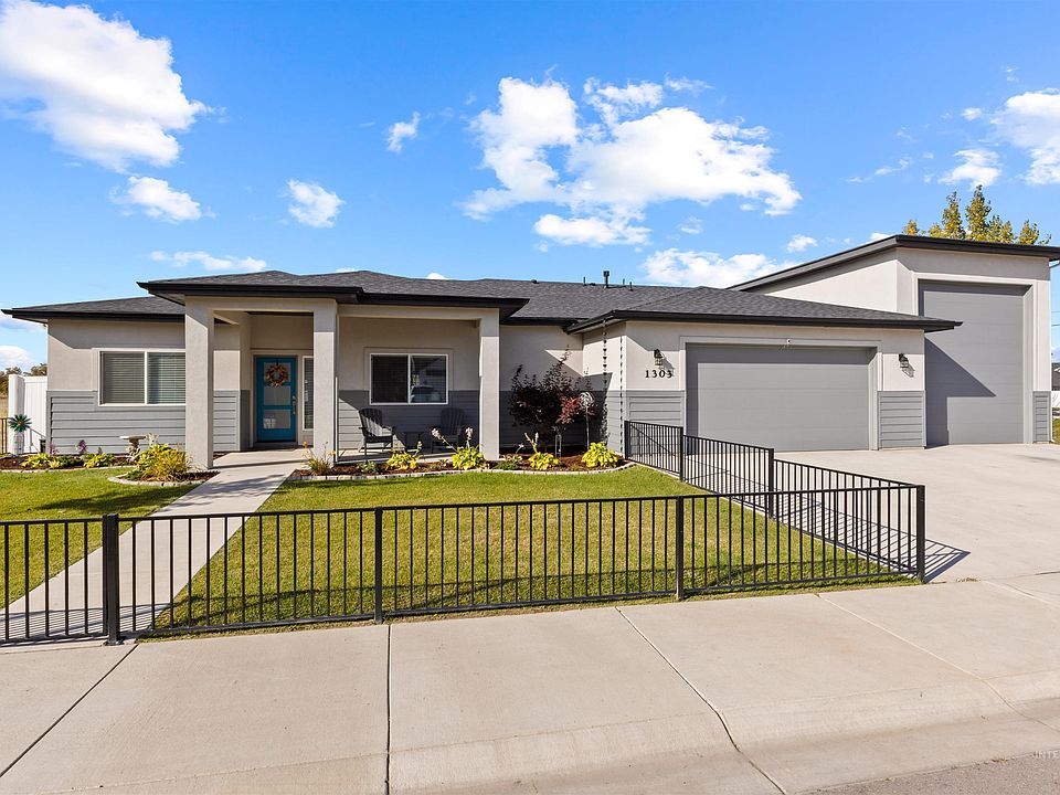 Beautifully maintained home that shows like new construction! This open floor plan offers a spacious great room with vaulted ceiling, gas fireplace, & easy care LVP flooring throughout the main living areas. The stunning kitchen features a large island, quartz counters, custom cabinets, built-in gas range, plus both a butler’s pantry & a large walk-in pantry. Dining area with shiplap accent walls & glass door to the covered patio-perfect for enjoying quiet evenings. The primary bedroom is oversized & spacious. Ensuite bath complete with dual vanity, quartz counters, tile flooring & full tile walk-in shower. Expansive master closet with direct access to the laundry room. Split-bedroom layout, stylish secondary rooms with wood accent walls, and 4th bedroom at front of home with barn door-great use for an office or hobby space.  Mudroom with built-in bench and storage is just off the door from the garage. Great lighting, neutral light colors and stylish finishes throughout. Oversized 2-car garage plus large RV bay- perfect for the RV or more vehicles & work space. Home is next to common area at the front of the community making it very private. The location offers peaceful country living yet close to amenities & shopping. No HOA—only small yearly irrigation fee. Stucco exterior, fully fenced yard - both front and back- fully landscaped. Come view today - this home will not disappoint!