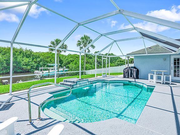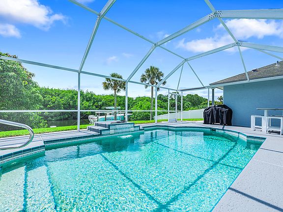 Beautiful Boaters Paradise. This home has Ocean access on a protected deep water canal of the North Fork of the St Lucie River. The dock has electric, water and a 10,000 lb lift. Enjoy the beautiful water and preserve views from most rooms. The home has 4br, 2 baths, 2 car garage and a gorgeous screened water fall pool to enjoy when you are not boating. The home is updated with granite counters, Stainless appliances, beautifully appointed Master bathroom and much more. You have a formal dining, living room, and a bonus Game/Florida room. Be ready for some fun and enjoyment. A new metal roof was installed in 2022, A/C is less than 1 year old, it has white vinyl fencing, and a sprinkler system, The Owner is flexible with furniture