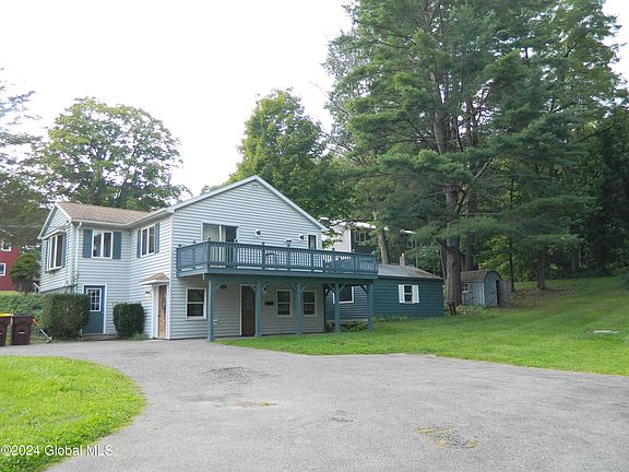 Two family home in a country setting on 0.68 acre lot. Upstairs unit has a welcoming foyer entry. Eat-in kitchen with custom cabinetry. Dining area overlooking wrap-around deck. Nice sized living room with new carpet in many rooms. Updated bathroom with ceramic tile design. Freshly painted throughout. First floor Unit, kitchen with white cabinetry open to dining area & living room. Updated bathroom. Laundry room. Newer hot water heater. Nice size yard & paved parking area. Additional 13X22 building on the property. Great art studio, workshop, toy barn etc. Heater as is they have never used it. Detached shed and gazebo as is.