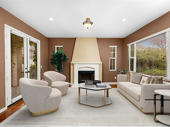 The formal living room showcases a cozy fireplace and French doors leading to a charming front courtyard, perfect for relaxing or entertaining. The gourmet kitchen is a chef’s dream, complete with a center island, stainless steel appliances, double oven, pantry, and a sunny breakfast nook. It opens seamlessly to the inviting family room with its fireplace, creating the perfect gathering space.