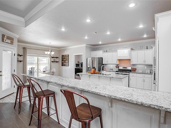 Eveningstar Elementary (Bentonville Schools) zoned beauty in Cave Springs that will check every box! 3 car garage, 4 bed, 3 full bath, with a massive hidden pantry and giant bar and island that is perfect for the entertainer. It's as wide open of a floor plan as there can be! Outside is have a rare find as well.. a newly built home with mature trees with an expansive deck and pergola to enjoy! The primary closet is huge and you'll enjoy 2 bathrooms with dual vanity and nice primary bath tiled shower with jacuzzi tub. Gas range in the kitchen to top it off! East facing home!