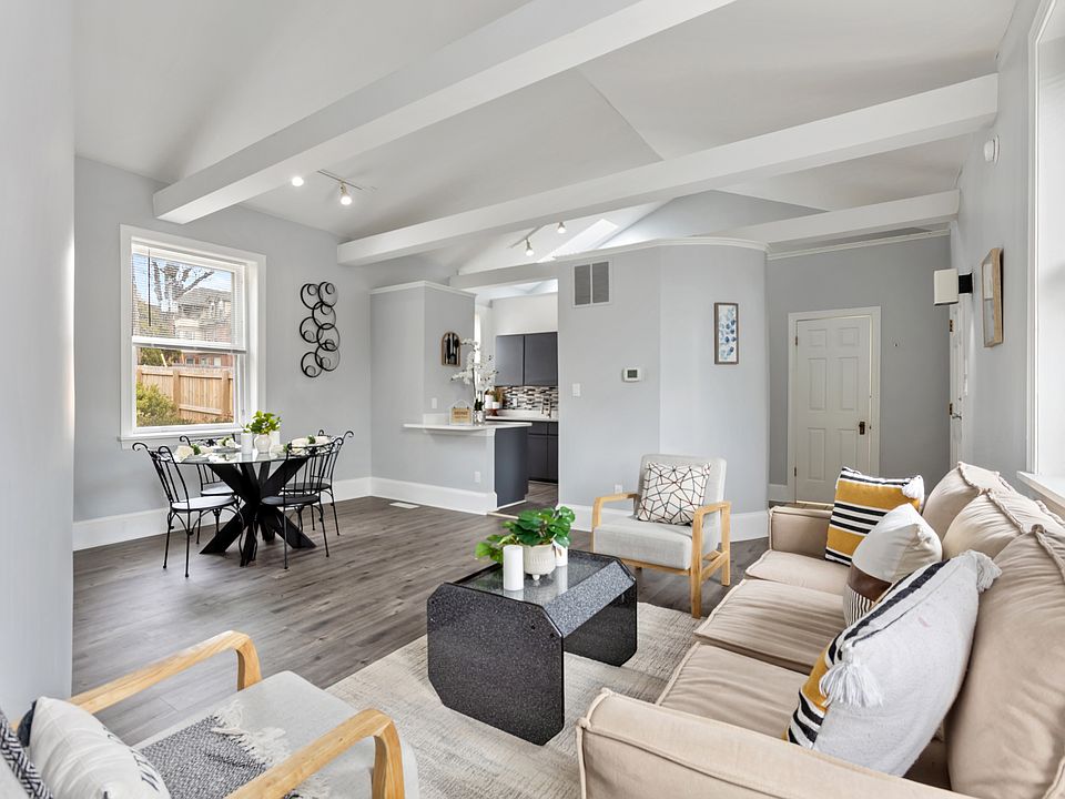 Enjoy modern living with quartz countertops, brand-new cabinetry, stainless steel appliances, and luxury vinyl plank flooring throughout. The home also features in-unit laundry, central heating and air conditioning, and one off-street parking space for added convenience.