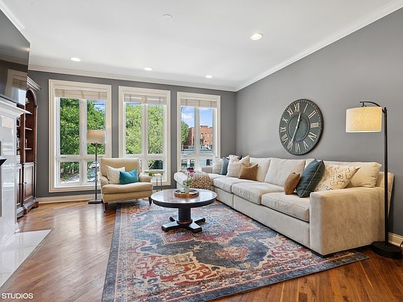Looking for more space in the city? This 4 level townhome that lives like a single family has you covered! Welcome home to this spacious and upgraded all-brick 3bed/3.1bath townhome in PRIME Lakeview. Incredible walk-score being located in Burley school district and one block from the heart of the Southport Corridor! As you walk into your private entry you're greeted by a large foyer leading into a bonus space currently set up as an office/sitting area with access to your ATTACHED 2 car garage and fitted with side by side washer and dryer. Heading up one level of stairs you're greeted with a wide open floor plan incorporating a large living room with diagonally laid hardwood floors and a beautiful view looking down tree-lined Lakewood Ave out of the floor to ceiling windows. Take advantage of the fireplace with updated tiling on a cold Chicago winter night. Beautifully renovated open kitchen with 42' cabinets, quartz countertops, custom pendent lighting, large island, stainless steel appliance package and a separate built-in desk/dry bar with wine/beverage fridge. Entertain your guests at the breakfast bar with seating for 4, or step outside onto your private balcony for grilling or relaxing! Rounding out the main level of the home is a well-appointed and convenient powder room right off the kitchen. The 3rd level features a spacious primary suite with plenty of room for a king sized bed, professionally organized closets and an en-suite with dual vanity, oversized walk-in shower and separate soaking tub. Third level also features the second bedroom just a few steps down the hall and a second full bathroom with updated vanity and shower with tub. As you head up to the top level of the home you'll be impressed by the media/family room or additional work from home space, a 3rd full bathroom and large 3rd bedroom. Walk out onto your sunny south facing rooftop deck with skyline views. Walking distance to Southport Corridor, public transportation (red and blue lines), grocery stores, cafes, parks and Wrigley Field.