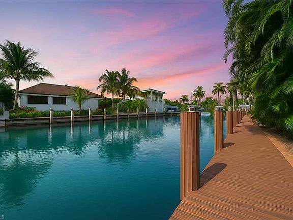 (Never flooded!) The only available Royal Harbor buildable homesite offering almost 200 feet of waterfront on a premier fingertip cul-de-sac. Positioned at a higher elevation than neighboring streets, ensuring added protection and peace of mind from hurricane surge. This exceptional property offers a brand-new roof, a freshly painted exterior, and a rare opportunity to live the ultimate Florida lifestyle. Whether you're a retiree looking for a beautifully renovated waterfront home or a visionary ready to design your dream estate, this property delivers the perfect canvas. With almost 200 feet of prime waterfrontage, this boater’s paradise features a new composite dock and two boat lifts, which could be easily adapted to accommodate a large yacht. Situated at a higher elevation, this home remained unaffected by Hurricane Ian’s flooding, ensuring peace of mind for future owners. Tucked away in a tranquil cul-de-sac with no through traffic, the property offers a private, serene setting with an enchanting blend of Old Naples charm and modern luxury. The interior is a masterpiece of design, with imported Italian cabinetry, elegant Italian tile flooring, and custom-cut granite throughout. Premium appliances from Wolf, Sub-Zero, Bosch, and Miele elevate the kitchen and living spaces. The spacious master suite features a custom open-closet system and a private patio overlooking the pool and expansive water views, perfect for enjoying stunning sunsets. The guest bath is a true sanctuary, complete with art glass tile and custom granite detailing. Step outside to your private pool and spa, surrounded by lush, meticulously designed landscaping, including towering palms and a park-like atmosphere. Whether relaxing by the water or strolling down to your dock to watch dolphins play, you’ll feel like you’re living in your own secluded paradise. With no-bridge access to the Gulf of Mexico, you can set sail from your backyard directly into the open waters. This is a rare opportunity to secure a prime waterfront location to live in now or build the home of your dreams. Don’t miss out—this property won’t last long.