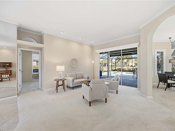 Located in Worthington Country Club, this three-bedroom residence presents a seamless layout designed for today’s discerning buyer. This open floor plan connects seamlessly with a panoramic screened lanai, where a paver-clad terrace surrounds a private inground pool overlooking the manicured golf course. The kitchen features quartz countertops, tile backsplash, a spacious center island, and stainless-steel appliances. Both baths have been updated with sleek vanities and walk-in showers, enhancing the home's functional elegance. Custom California closet systems in bedrooms. Additional enhancements include a newer Hot Springs hot tub, whole-home generator, Bahama shutters, and hurricane protection. The two-car garage has air conditioning and EV charging station. Worthington Country Club offers an active lifestyle with access to an 18-hole championship golf course, five Har-Tru tennis courts, a well-appointed clubhouse offering elegant dining, a state-of-the-art fitness center, a resort-style pool and a poolside cabana. All conveniently near Bonita Beach, Southwest Florida International Airport, and premier shopping and dining venues. Next door, an exciting new development, Midtown at Bonita is set to open in 2026 with new dining and retail. Club enhancements are in progress, including five new tennis courts, four pickleball courts and a new indoor-outdoor cabana featuring an electric pergola, with no special assessment to property owners.