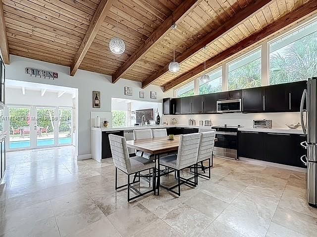 This is the one" is what you will immediately feel upon walking into this immaculate and completely remodeled 4/3 or 3/3 + den home. 2 Masters w/ huge closets nestled on an over sized 17,790 lot in much sought after rarely available Falls area. Wood beam ceilings, marble travertine throughout, huge gorgeous open kitchen w/ new Samsung appliances which opens up to a family room that leads to an expanded yard with a saltwater pool, covered patio with steel beamed columns, modern outdoor shower, various fruit trees, 3 zone sprinkler system, 6 Swan cameras covering entire perimeter of front, back and pool area, a/c garage w/custom built cabinets for extra storage, 2nd refrigerator, impact garage door, 2 a/c units w/ 10 yr warranties, 1- 2 yrs; 1- 4 yrs -new compressor, and more, come and see!