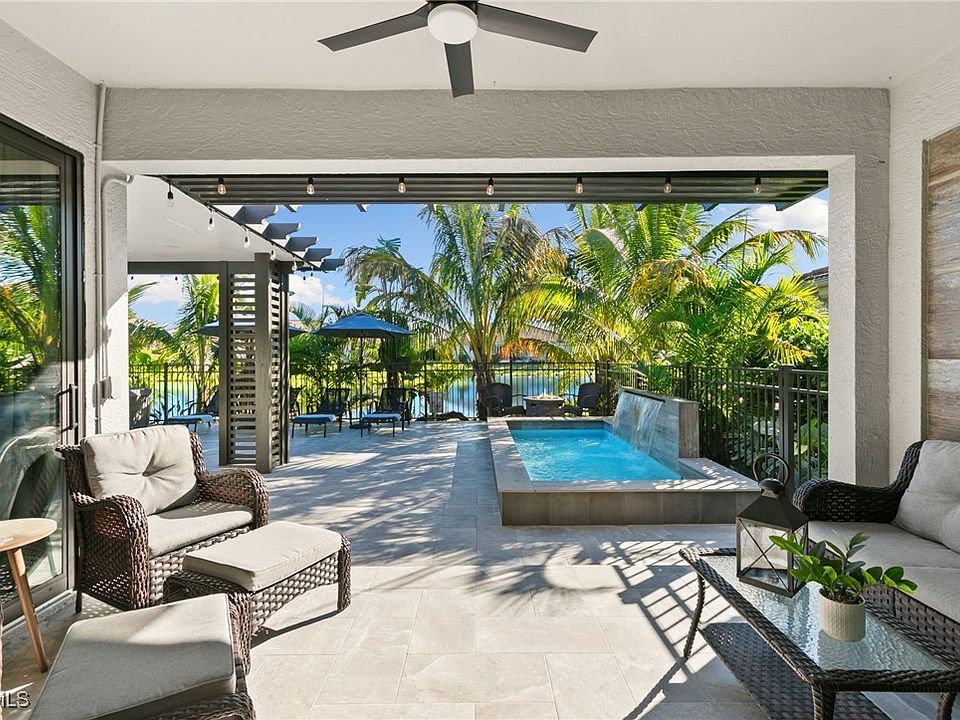 Step outside to discover over 1,000 SQUARE FEET OF PRIVATE OUTDOOR LIVING, including a 25’ x 40’ PATIO with a tranquil WADING POOL AND WATERFALL FEATURE, a FOUR-PERSON JETTED SPA, COVERED LANAI, and an OUTDOOR SHOWER. Surrounded by lush landscaping on a quiet cul-de-sac with lake views alive with native Florida wildlife, this outdoor space offers both serenity and endless opportunities to entertain.