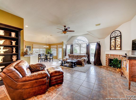 4 Sides Stone/Brick Exterior 1 Story! Nestled In Neighborhood on Greenbelt Lot W/27x17 Patio 14 Backyard Trees including 100+y/o Heritage Oak! Tile Throughout Except BRs! High Ceilings, Brick Fireplace w/Hearth & Mantle! Rotunda Formal Dining w/Octagon Lit Ceiling! Lg Master Suite w/Sep Garden Tub/Shower! Chef Ready Kitchen w/Silestone Counters,Convection Microwave, 5 Burner Gas Stove & Oven "18, Bosch Dishwasher "18, 5Ton HVAC"13, Roof "17, Gutters "13, Water Heater "18! Approx 10x10 Attic Storage!