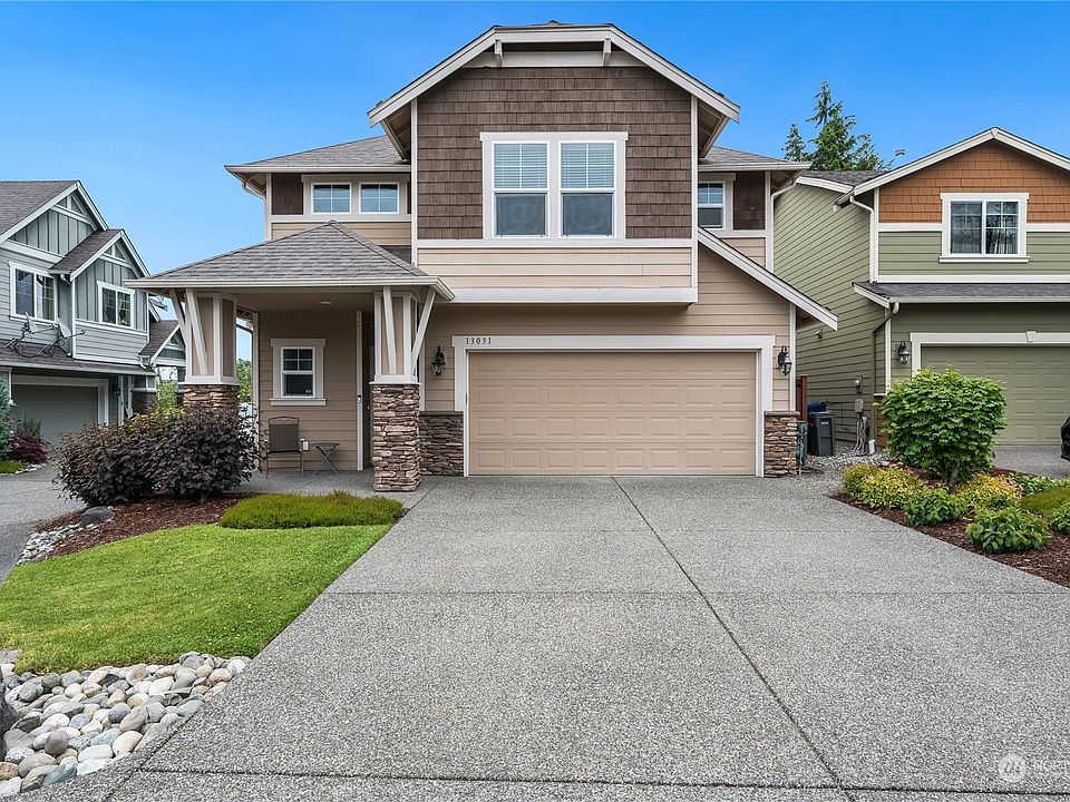 Fall in love with this impeccably maintained Craftsman style home tucked away on a private cul-de-sac. Open floor plan with 9' ceilings on the main floor. Spacious kitchen with island bar, walk-in pantry & SS appliances and dining area opening up to the great room with cozy gas fireplace. Primary suite boasts custom closet organizer in the walk-in closet, a 5-piece bath, and peek view of the Cascade Mountains. Low maintenance fenced yard with patio. 2 car garage + 3 spaces in driveway & guest parking across the street. Additional upgrades and features include High-Tech wiring, upgraded mount for big screen TV, recessed lighting, new washer & hot water tank, screen entry doors & storage rack in garage. Excellent location! Move in ready!