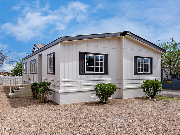 Seize the chance to own this 3-bedroom, 2-bath mobile home with no HOA! Inside, you'll find an open layout with vaulted ceilings, skylights for ample natural light, a soothing palette, and contemporary wood-look flooring. The well-appointed kitchen comes with sleek quartz counters, grey shaker cabinets, SS appliances, and a peninsula with a breakfast bar for casual meals. The primary bedroom showcases plush carpeting, a walk-in closet, and a private bathroom for added comfort. Discover a well-sized backyard offering breathtaking mountain views and plenty of space for crafting your dream oasis. Conveniently located close to schools, parks, restaurants, and shopping options. Don't let this opportunity pass by!