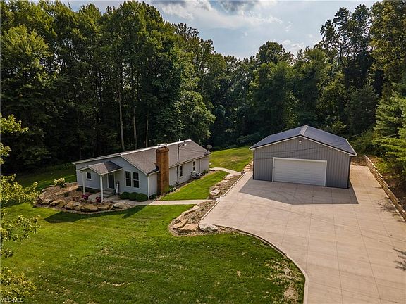 Beautiful country living! Completely remodeled ranch down to the studs! This home offers open floor plan with vaulted ceilings, newer flooring throughout, professional landscaping with fire pit all offered on 2.28 wooded acres! in 2015 the following were updated: air conditioning, roof, siding, insulation, wiring, plumbing, lighting and pressure tank for the well. 2017 gas furnace with programmable thermostat. 2018 well pump and 30 X 40 garage with oversized insulated garage doors and openers. Sub panel in garage and attic access. 20 foot wide concrete drive way with extra 10 feet on the side of garage for extra car or camper storage. 2020 hot water tank. This home is a rare find! Easy access to Akron, Canton and Cleveland