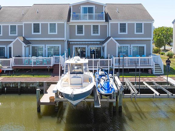 Rarely Available 4 BR / 3.5 BA Waterfront Townhome with Deeded Boat Slip! This meticulously maintained townhome offers the ultimate coastal lifestyle with a deeded boat slip, 14,000 LB boat lift with 20' Titan catwalk currently configured for a boat and two jet skis. Perfectly situated on a canal with beautiful bay views, this property is a true waterfront gem. A full third-story addition was completed in 2021, creating a spacious 4th bedroom with private bath, featuring a full sized bath tub. Inside, enjoy numerous upgrades including luxury vinyl plank flooring (extra available if someone wants to use to finish the foyer and kitchen areas), a whole-house water filtration system (serving inside and outside faucets), Nest security, keyless entry, smoke/CO Monitors and thermostat system, including Google Nest Wi-Fi points for strong signal throughout! Rinnai tankless and unlimited hot water heater installed in 2018. The HVAC system was also updated in 2018 for peace of mind. The kitchen is a showpiece with a custom cabinet, stainless steel appliances (2020), wine fridge, trash compactor, tile backsplash, under-cabinet lighting, pantry and more. The owner’s suite features a walk-in closet for added storage, and an updated bath with full size soaking tub! Throughout the home, you’ll find amazing custom light fixtures, upgraded ceiling fans and window treatments that truly set it apart. Relax on one or both of the amazing "Sac" Sectionals that can be rearranged or configured to suit your needs!! Outdoor living is exceptional with updated decking and patio (2022/2023), a motorized retractable awning, and even a firepit table, as well as additional bar (high) top seating to take in the views. Outdoor area also features water & gas for convenience, as well as outdoor storage! Assigned Parking as well as additional unassigned spaces right outside the front door! Walk down to the Community pier for additional fishing and crabbing spots!! Best of all—No Ocean City town taxes! Ideally located just 1.3 miles to the beach and close to fantastic restaurants, shopping, and even the spa. A rare opportunity for the perfect waterfront retreat! Call TODAY for your Private Tour!!