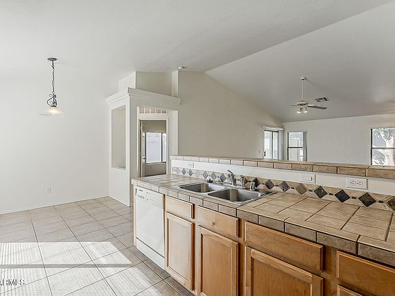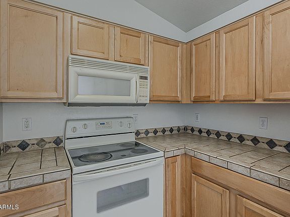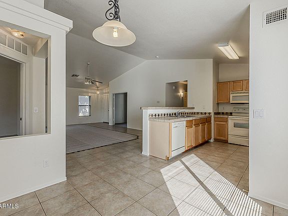 Rancho El Mirage single-level, 1,530 SF, 3 bed + den (or 4th BR), 2 bath, 2-car garage on a 5,320 SF lot. Great room plan with tile/carpet, breakfast bar and breakfast room. Kitchen includes electric range/oven, built-in microwave, dishwasher, refrigerator, and pantry. Inside laundry. Primary suite with full bath and walk-in closet. North/South exposure, tile roof, block fencing, and covered patio. Low-maintenance front yard with irrigation; backyard ready for personalization. Electric heating, central air. HOA $100/quarter. Close to City parks and retail at Dysart & Thunderbird. All NEW carpet throughout.