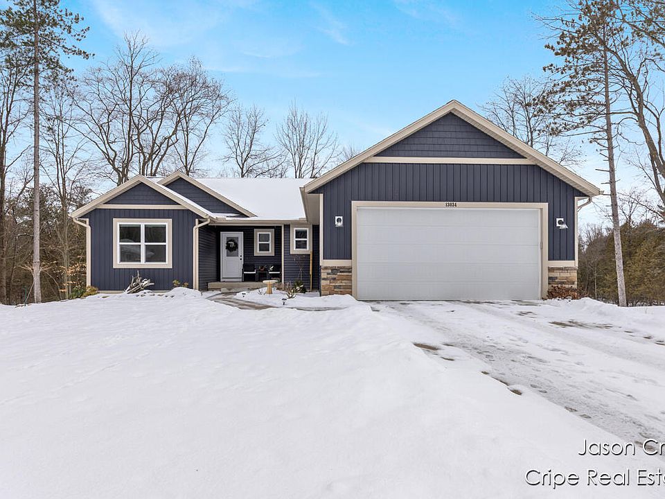 Discover this custom 2022-built ranch located on nearly 3 wooded acres with private frontage on all-sports Muskellunge Lake, which connects to Maston Lake. Situated just 30 minutes from Grand Rapids, this property offers modern conveniences like natural gas and high-speed internet. The main level features an open-concept design with a center island kitchen, pantry, and main-floor laundry. Two bedrooms and 1.5 bathrooms complete the main floor. Expand your living space in the full basement, which is already framed for an additional bedroom, bathroom, and living area. Enjoy the outdoors from the back deck or the large open back yard perfect for parties or gatherings. Check out the summer photos to see all the landscaping improvements! Head towards the water of Muskellunge Lake on the cleared walking trail. This newer construction combines lakefront living with significant potential for added value. Call for a private showing.
