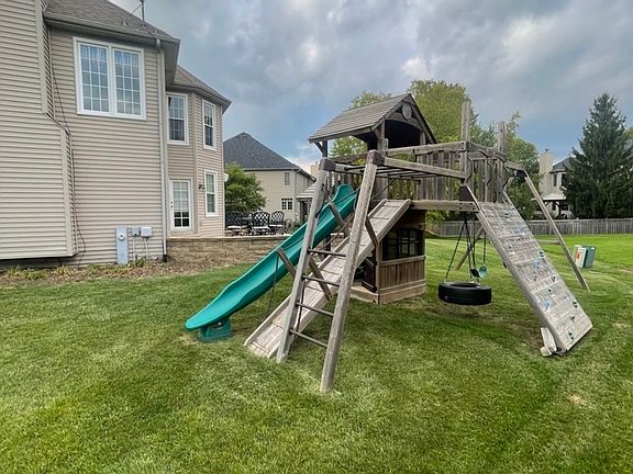 Welcome to Your Dream Home in Sought-After Grande Park - Sage Knoll! Step into this stunning and meticulously maintained 4-bedroom, 4-1 bath home, where elegance meets everyday comfort. From the moment you enter the soaring two-story foyer, you're greeted with an abundance of natural light and a sense of spacious luxury that flows throughout the open-concept floorplan. The first-floor office is perfect for remote work or a quiet study, while brand-new carpeting on the main level adds a fresh, modern touch. The heart of the home is the kitchen-featuring gleaming granite countertops, stainless steel appliances, a double oven, expansive island, and a walk-in pantry-ideal for hosting and everyday living. Gather in the impressive two-story family room, complete with a cozy fireplace and a breathtaking wall of windows that overlook the beautifully landscaped backyard. Upstairs, retreat to your luxurious primary suite with dual walk-in closets, dual vanities, and a spacious shower. The finished basement offers even more living space, boasting a home theater, a 5th bedroom, and a full bath-perfect for guests or extended family. Enjoy peace of mind with newer windows (2019) and a recently replaced A/C unit (2021). Step outside to your private backyard oasis, featuring a charming wooden playset, fire pit, and plenty of space to entertain or relax. All of this is nestled in the vibrant Grande Park Sage Knoll community, offering top-tier amenities including a clubhouse, pool, tennis courts, parks, walking trails, basketball and volleyball courts, and more.